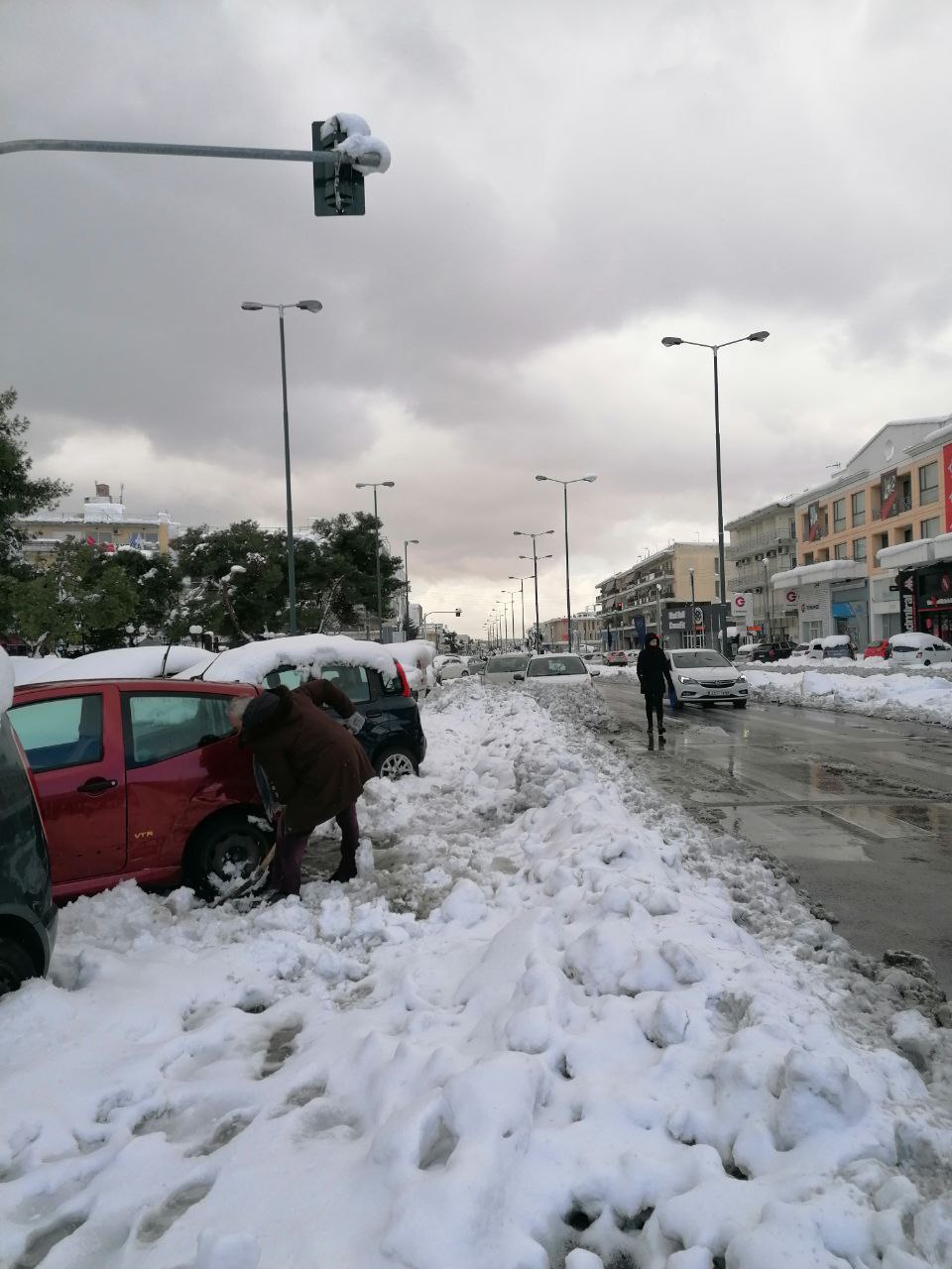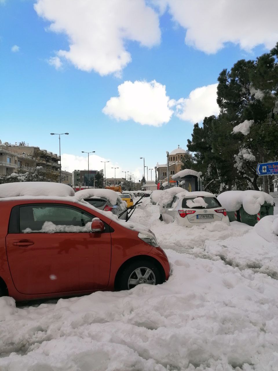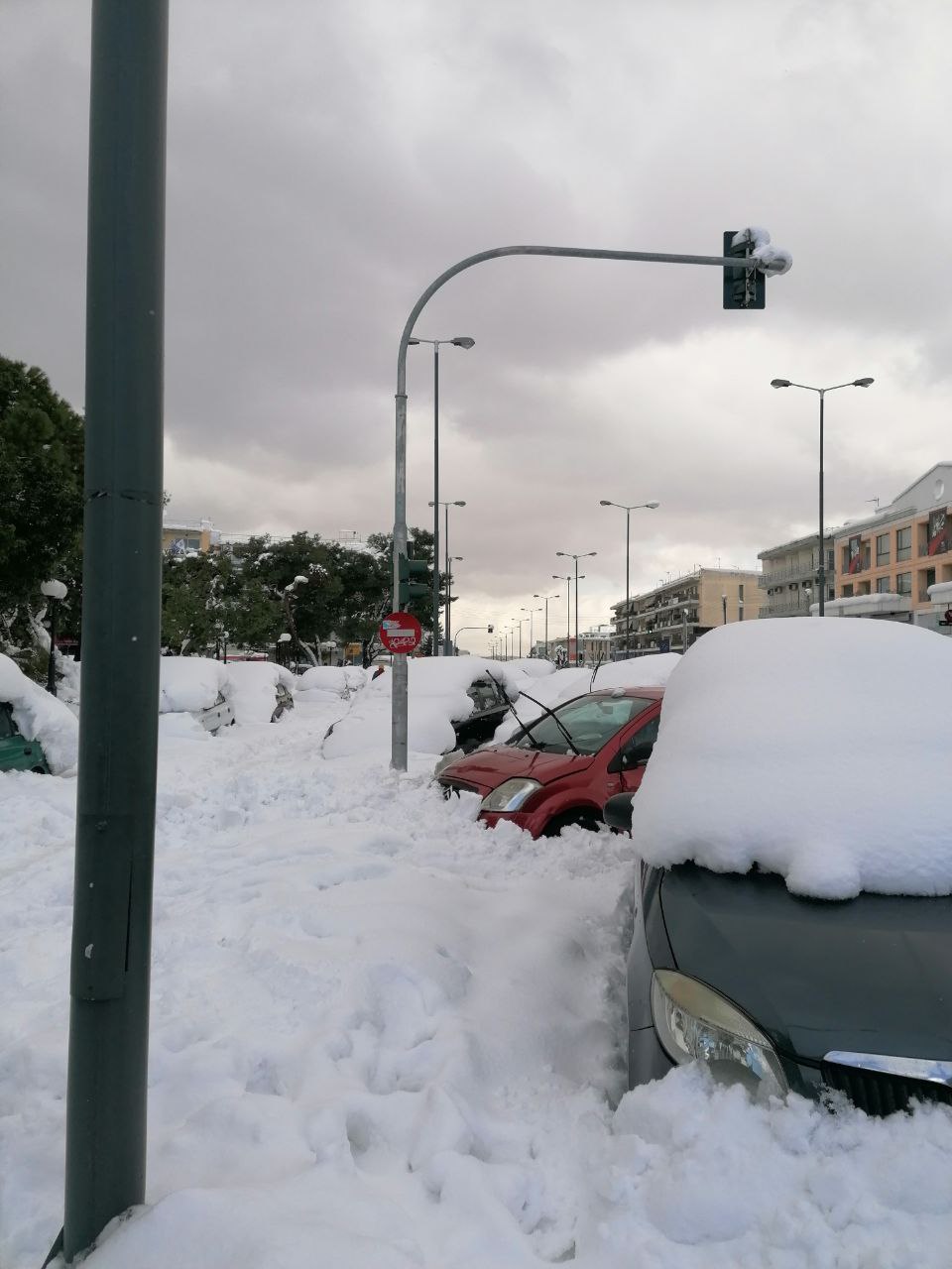 Αυτοκίνητα βυθισμένα στο χιόνι στη Μεσογείων