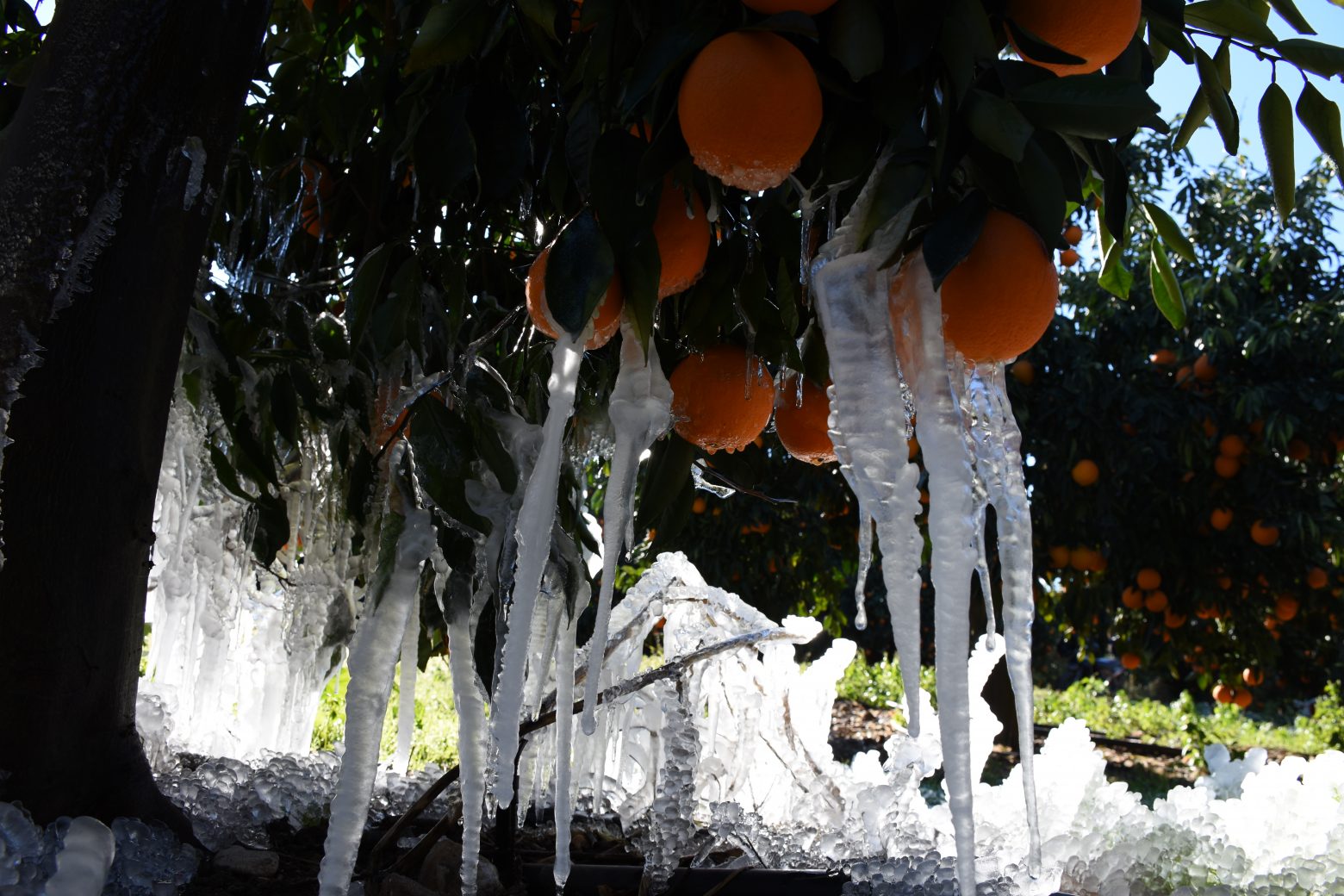 Άλλωστε το θέαμα που αντίκρισαν πηγαίνοντας στα περιβόλια τους ήταν πρωτόγνωρο. Σταλακτίκες και κρύσταλλοι κρέμονταν από τα δέντρα, με τους καρπούς να είναι καλυμμένοι από πάγο.