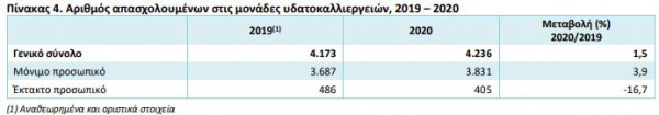Συγκεκριμένα, το 2020 το γενικό σύνολο εργαζομένων ανήλθε σε 4.236 έναντι 4.173 εργαζομένων το 2019.