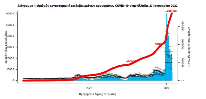 Τα νέα εργαστηριακά επιβεβαιωμένα κρούσματα της νόσου που καταγράφηκαν τις τελευταίες 24 ώρες είναι 19.712, εκ των οποίων 70 εντοπίστηκαν κατόπιν ελέγχων στις πύλες εισόδου της χώρας. Ο συνολικός αριθμός των κρουσμάτων ανέρχεται σε 1.867.935 (ημερήσια μεταβολή +1.1%), εκ των οποίων 49.8% άνδρες.