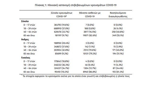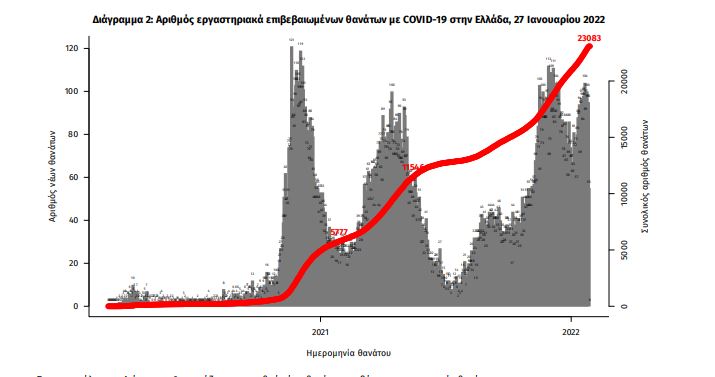 Οι νέοι θάνατοι ασθενών με COVID-19 είναι 112, ενώ από την έναρξη της επιδημίας έχουν καταγραφεί συνολικά 23.083 θάνατοι. Το 95.0% είχε υποκείμενο νόσημα ή/και ηλικία 70 ετών και άνω.