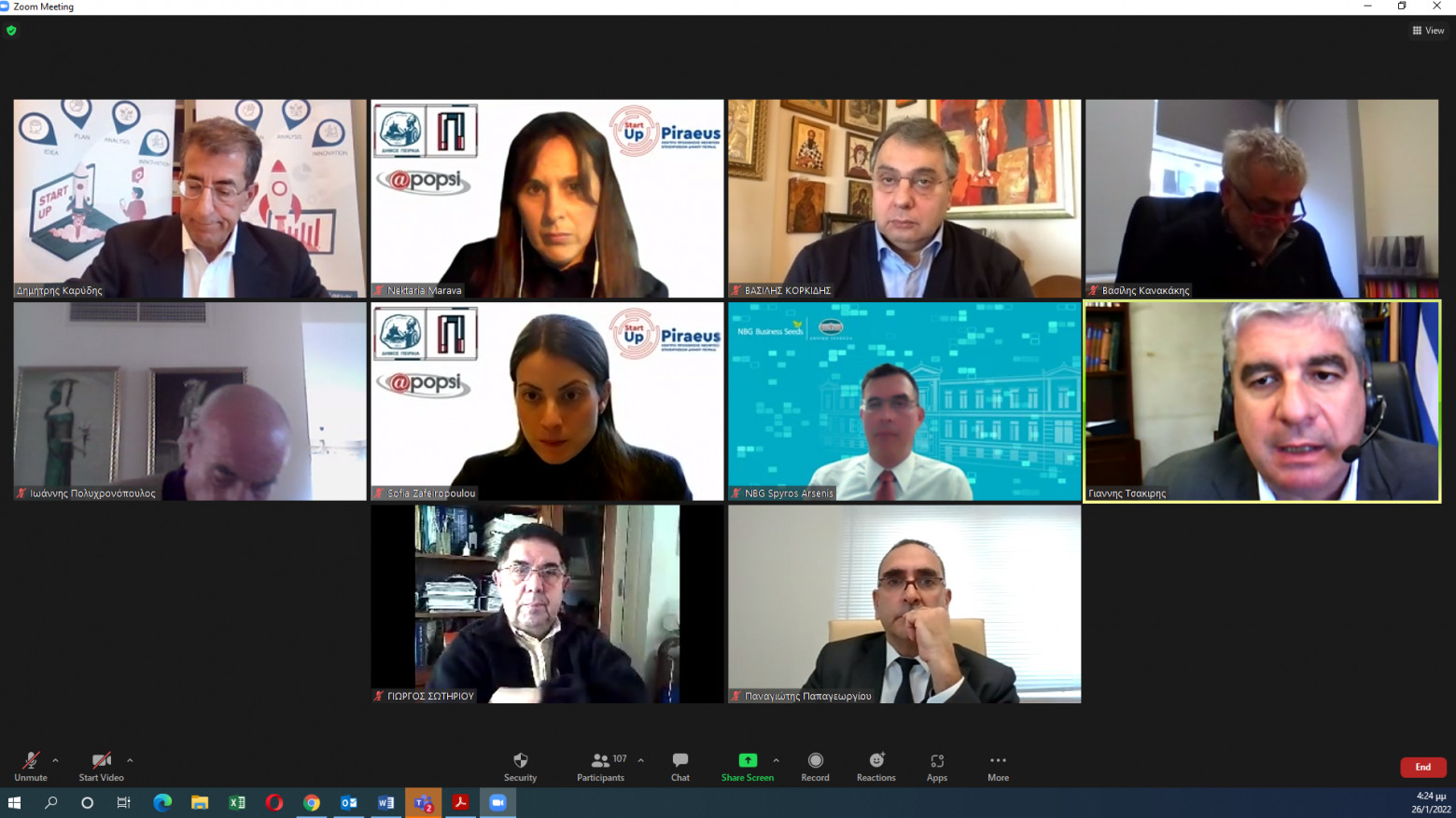 Με μεγάλη επιτυχία πραγματοποιήθηκε η 1η Διαδικτυακή εκδήλωση του «Κέντρου Προώθησης Νεοφυών Επιχειρήσεων» του Δήμου Πειραιά με τίτλο «Επενδύοντας στη γαλάζια καινοτομία: Τομείς, φορείς, ευκαιρίες και προκλήσεις χρηματοδότησης».