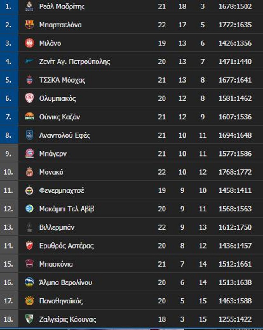 Νωρίτερα, η ΤΣΣΚΑ πέρασε από το Καζάν επικρατώντας της Ούνικς με 86-75, έφτασε το ρεκόρ της στο 13-8 προσπερνώντας τον Ολυμπιακό στην βαθμολογία, με την ομάδα του Δημήτρη Ιτούδη, να έχει ένα παιχνίδι παραπάνω.