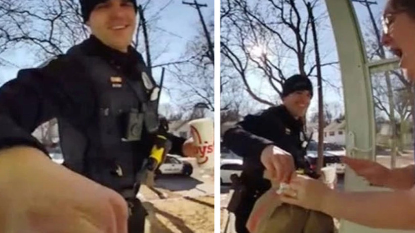 Ο λόγος για την Αναστασία Έλσινγκερ, κάτοικος του Σιού Φολς, στη Νότια Ντακότα, η οποία ανέβασε ένα βίντεο, που απαθανάτισε η κάμερα ασφαλείας στην πόρτα της με έναν αστυνομικό να ανεβαίνει τα σκαλιά της και να της παραδίδει το φαγητό.