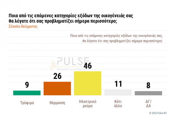 Το μεγαλύτερο ποσοστό (46%) απάντησε το ηλεκτρικό ρεύμα, ενώ ακολουθεί η θέρμανση (26%) και τα τρόφιμα (9%).