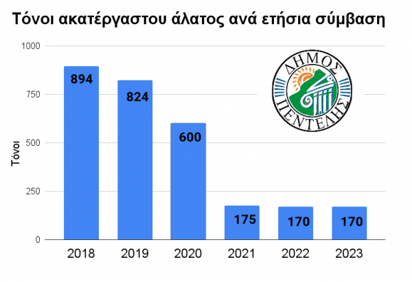 1. Επί δύο και πλέον χρόνια, η κ. Κεχαγιά δεν έχει ακόμα καταλάβει ότι οι ανάγκες του ορεινού μας Δήμου σε ακατέργαστο αλάτι είναι ΠΕΝΤΕ ΦΟΡΕΣ μεγαλύτερες από αυτές που η ίδια συμβασιοποίησε για τα έτη 2021, 2022 και 2023 !!! Ενδεικτικά, οι προμήθειες του Δήμου Πεντέλης σε ακατέργαστο αλάτι ήταν: