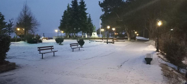 Οι κάτοικοι στο χωριό Λιβάδι, στη Λάρισα, ξύπνησαν σήμερα το πρωί βλέποντας το χιόνι, να έχει σκεπάσει τα πάντα γύρω του