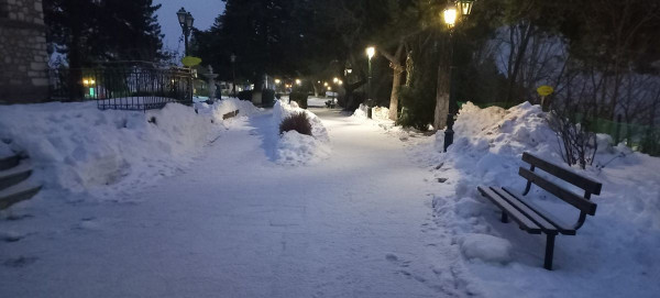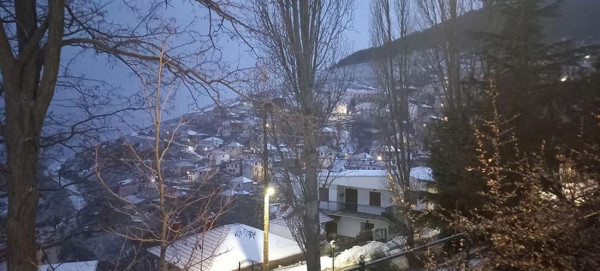 Η χιονόπτωση είχε ξεκινήσει από τις πρώτες πρωινές ώρες και σε συνδυασμό με τις χαμηλές θερμοκρασίες που επικρατούσαν και το υψόμετρο των 1200 μέτρων, «έντυσαν» το χωριό στα λευκά.