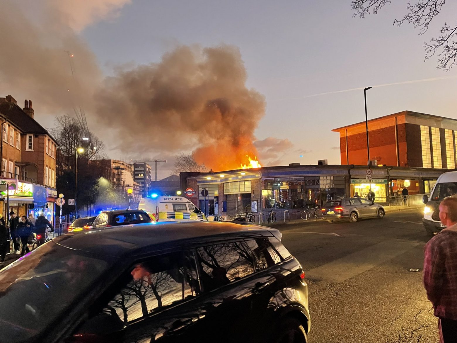 Αυτόπτης μάρτυρας κάνει λόγο για «εικόνα αποκάλυψης» με τις φλόγες να ορθώνονται σε μεγάλο ύψος. Ο δρόμος έξω από τον σταθμό έχει κλείσει στη διασταύρωση με την Gunnersbury Lane.