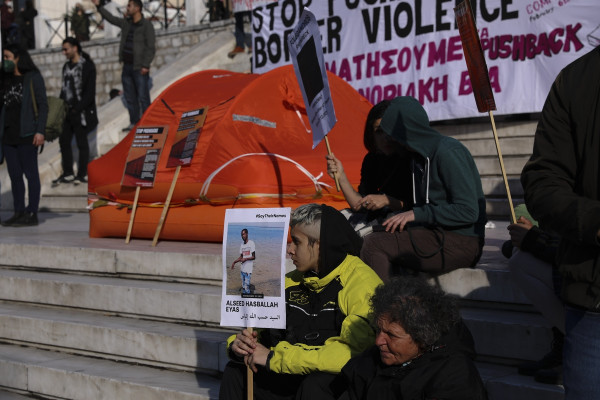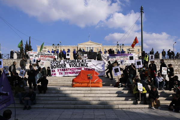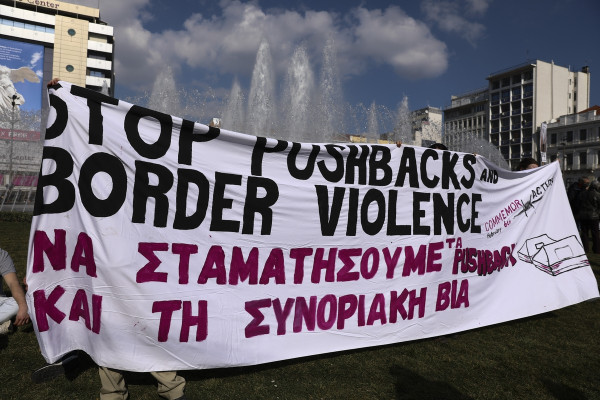 «Stop στις επαναπροωθήσεις. Stop στις δολοφονίες προσφύγων και μεταναστών» έγραφε το πανό που κρατούσαν οι διαδηλωτές.