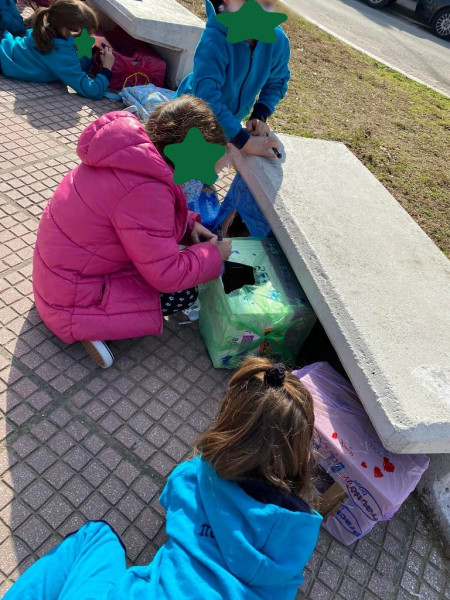 Με μέριμνα των αρχηγών Πέννυς Κοντολάτη, Εφης Μπίλιου Γεωργίας Κράβαρη, φρόντισαν να κατασκευάσουν από χαρτόνι ένα μικρό χώρο και είχαν ήδη προμηθευτεί τροφή για τα αδέσποτα.