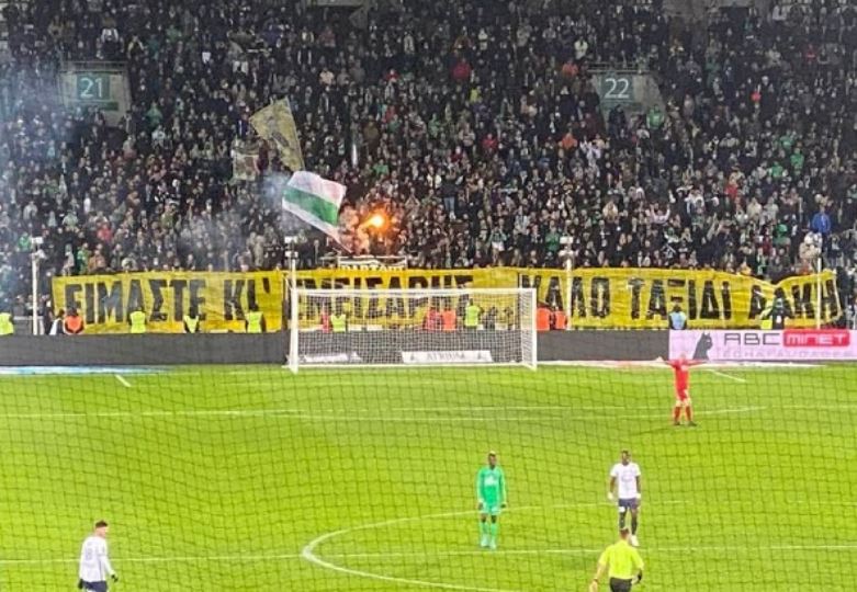 «Είμαστε κι εμείς Άρης. Καλό ταξίδι Άλκη», αναφέρει χαρακτηριστικά το πανό που ανέβασαν οι οπαδοί της γαλλικής ομάδας.