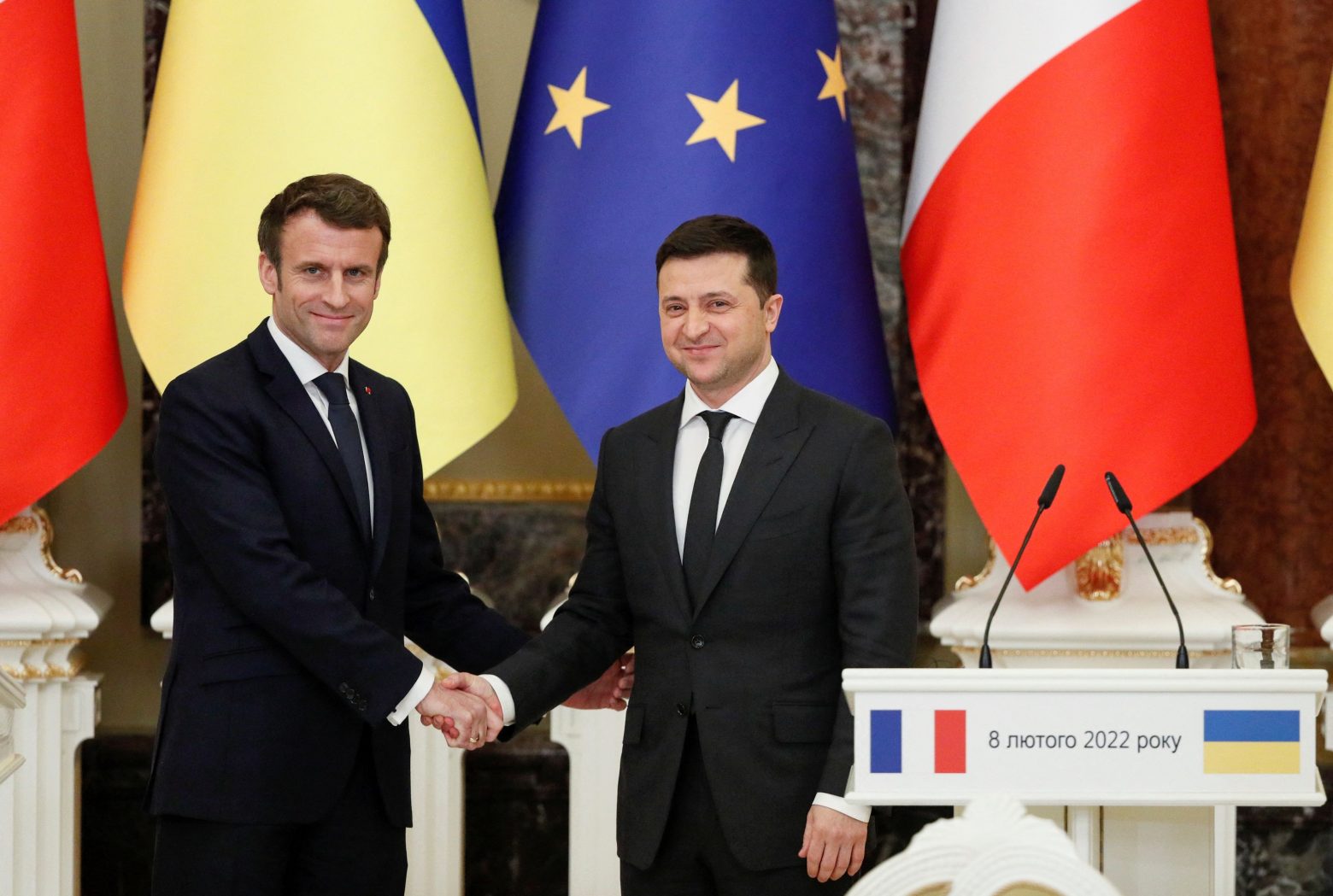«Έχουμε τώρα τη δυνατότητα να προχωρήσουμε στις διαπραγματεύσεις», είπε ο Μακρόν στον Ουκρανό πρόεδρο Βολοντίμιρ Ζελένσκι κατά τη διάρκεια συνέντευξης Τύπου μετά τις συνομιλίες των δύο στο Κίεβο.