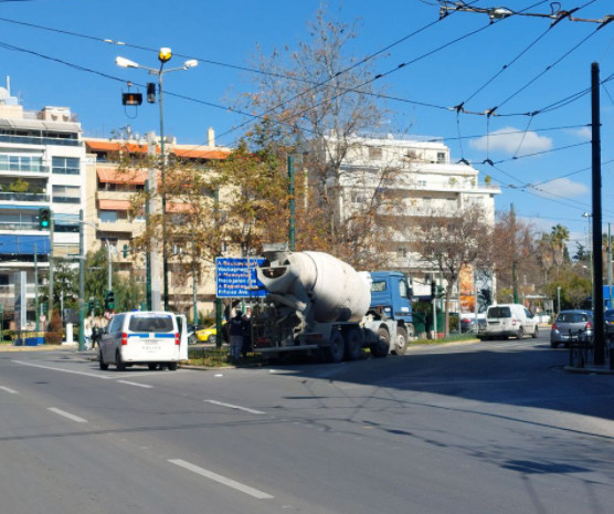 Το τροχαίο έγινε στη συμβολή της οδού Πατησίων με τη λεωφόρο Αλεξάνδρας, όταν διερχόμενο μηχανάκι συγκρούστηκε μπετονιέρα.