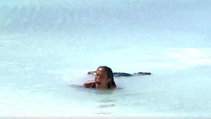 Οι παίκτες «πάγωσαν» βλέποντας την απόγνωσή της κι ο Γιώργος Κατσαούνης έσπευσε να την κουβαλήσει μέχρι την παραλία. Οι γιατροί της παραγωγής κατέφθασαν κι έβαλαν πάγο στο πόδι της κι όπως της μετέφεραν δεν πρέπει να είναι σοβαρός ο τραυματισμός της.