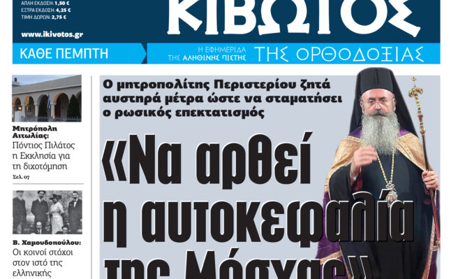 Το νέο φύλλο της εφημερίδας «Κιβωτός της Ορθοδοξίας» κυκλοφορεί αύριο Πέμπτη.