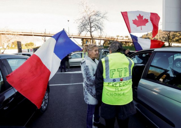 Περίπου 200 διαδηλωτές συγκεντρώθηκαν χθες, Τετάρτη, σε έναν χώρο στάθμευσης στη Νίκαια, στις μεσογειακές ακτές της Γαλλίας, πολλοί εκ των οποίων κρατούσαν καναδικές σημαίες, σε μια αναφορά στους οδηγούς φορτηγών στον Καναδά που διαμαρτύρονται κατά των περιορισμών για την αντιμετώπιση της covid-19, τους οποίους έχει επιβάλει η κυβέρνηση της χώρας.