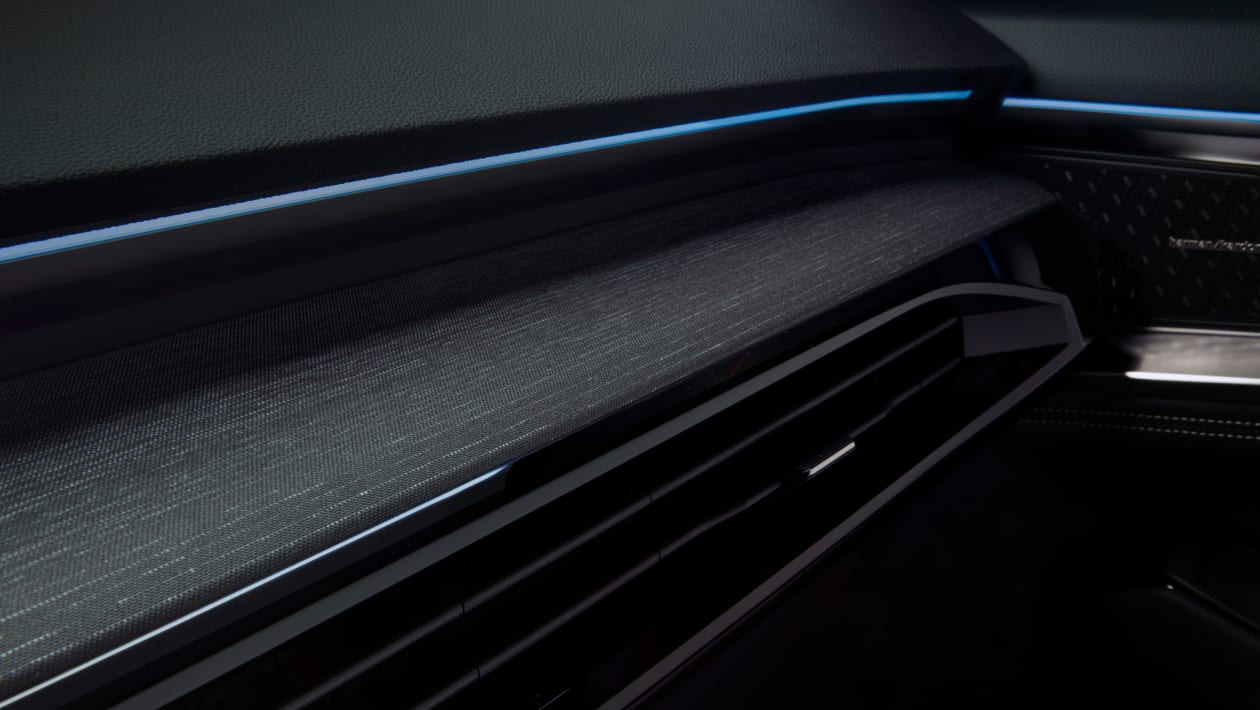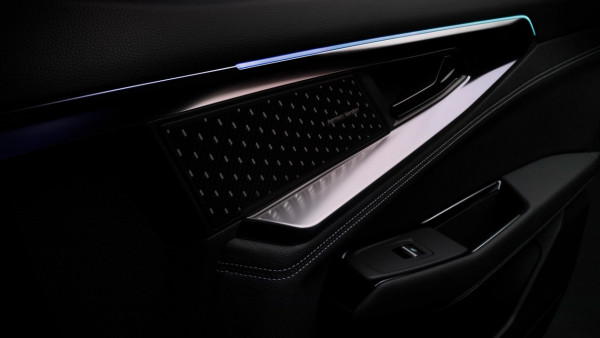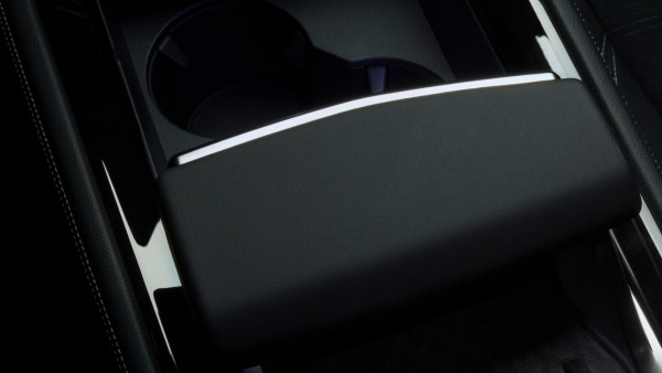 Η δεύτερη εικόνα αποτυπώνει την κεντρική κονσόλα η οποία φιλοξενεί ένα κυλιόμενο υποβραχιόνιο κάτω από το οποίο παρεπιδημούν μια επιφάνεια επαγωγικής φόρτισης κινητών και ένας αποθηκευτικός χώρος με ποτηροθήκες.