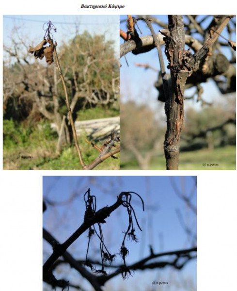 Με βροχερό καιρό εμφανίζεται βακτηριακή βλέννα στους μίσχους, τα νεαρά καρπίδια ή στα έλκη των κλάδων.