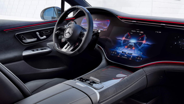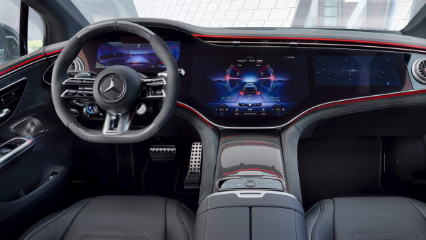 Φυσικά στο ταμπλό δεσπόζει η εντυπωσιακή Hyperscreen η οποία αποτελείται από τρεις ξεχωριστές οθόνες που καταλαμβάνουν το σύνολο της διαθέσιμης επιφάνειας, φιλοξενώντας τον ψηφιακό πίνακα οργάνων, το infotainment και το σύστημα ψυχαγωγίας και ενημέρωσης για τον συνοδηγό. Εκτός από την τελευταία εκδοχή του λειτουργικού MBUX με ό,τι αυτό συνεπάγεται η επιβλητική Hyperscreen έχει εμπλουτιστεί με γραφικά AMG και νέες ενδείξεις. Οι τελευταίες μπορούν να εμπλουτιστούν ακόμα περισσότερο σε συνδυασμό με AMG Track Pace το οποίο καταγράφει δεδομένα και χρόνους κατά την οδήγηση σε πίστα.