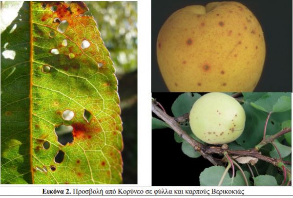 Σε όλες τις περιοχές αναμένεται αύξηση της θερμοκρασίας και κατά τόπους ασθενείς βροχοπτώσεις (υψηλή σχετική υγρασία), συνθήκες που ευνοούν την ανάπτυξη του μύκητα Κορύνεο στην βερικοκιά.