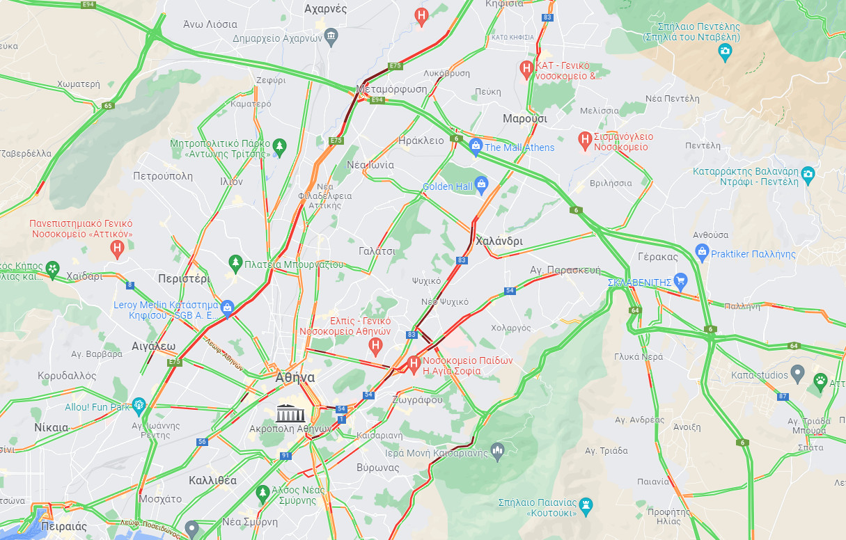 Καθυστερήσεις υπάρχουν και στη λεωφόρο Κηφισίας και στα δύο ρεύματα, αλλά και επί της Μεσογείων στο καθοδικό ρεύμα. Και η Κατεχάκη μποτιλιαρισμένη στο ρεύμα προς Αθήνα.
