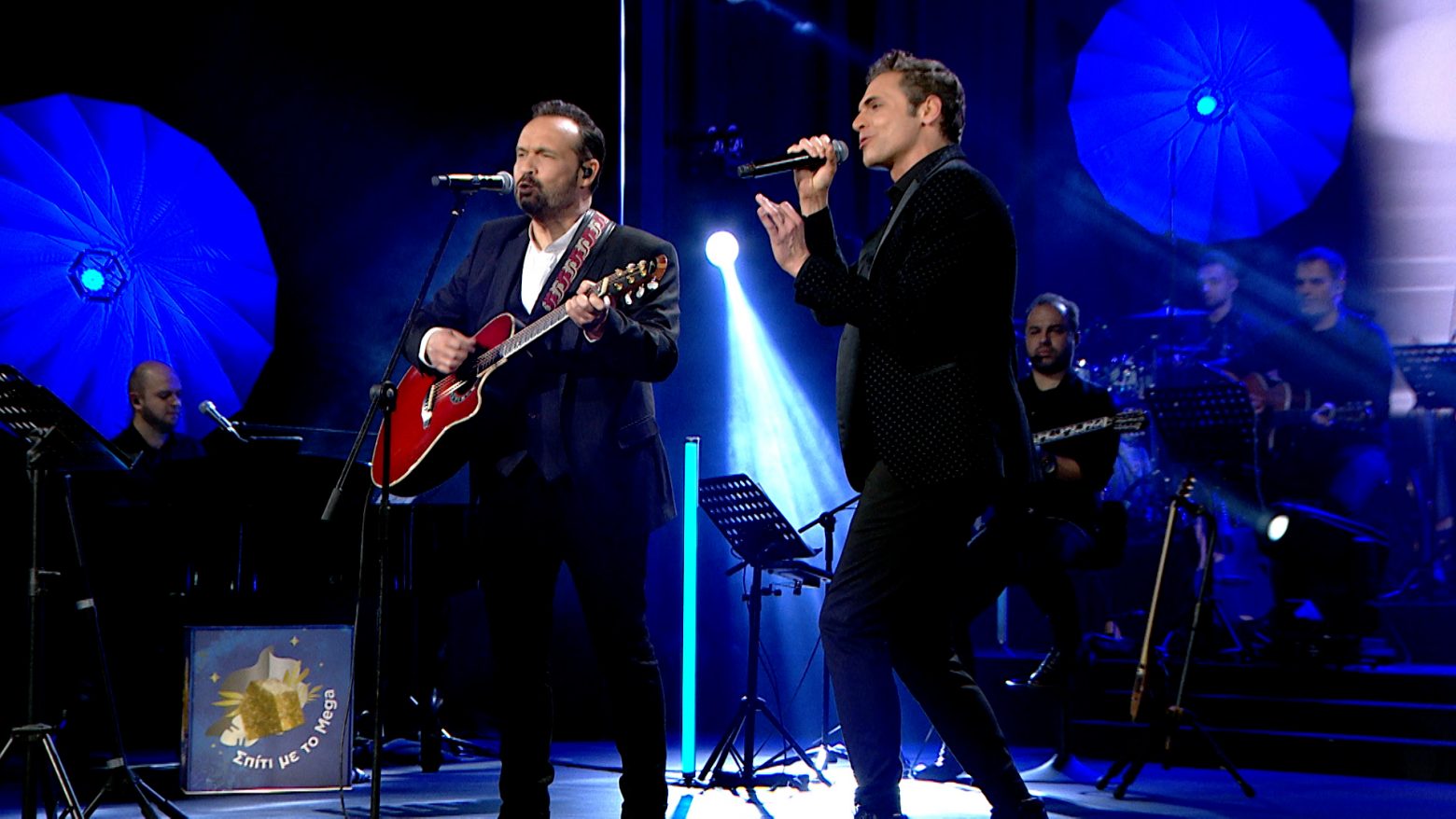 Ο τραγουδοποιός μαζί με τον ηθοποιό και τραγουδιστή Γιώργο Παπαγεωργίου λένε το υπέροχο τραγούδι του Σταμάτη Κραουνάκη και ξεσηκώνουν τους τηλεθεατές.