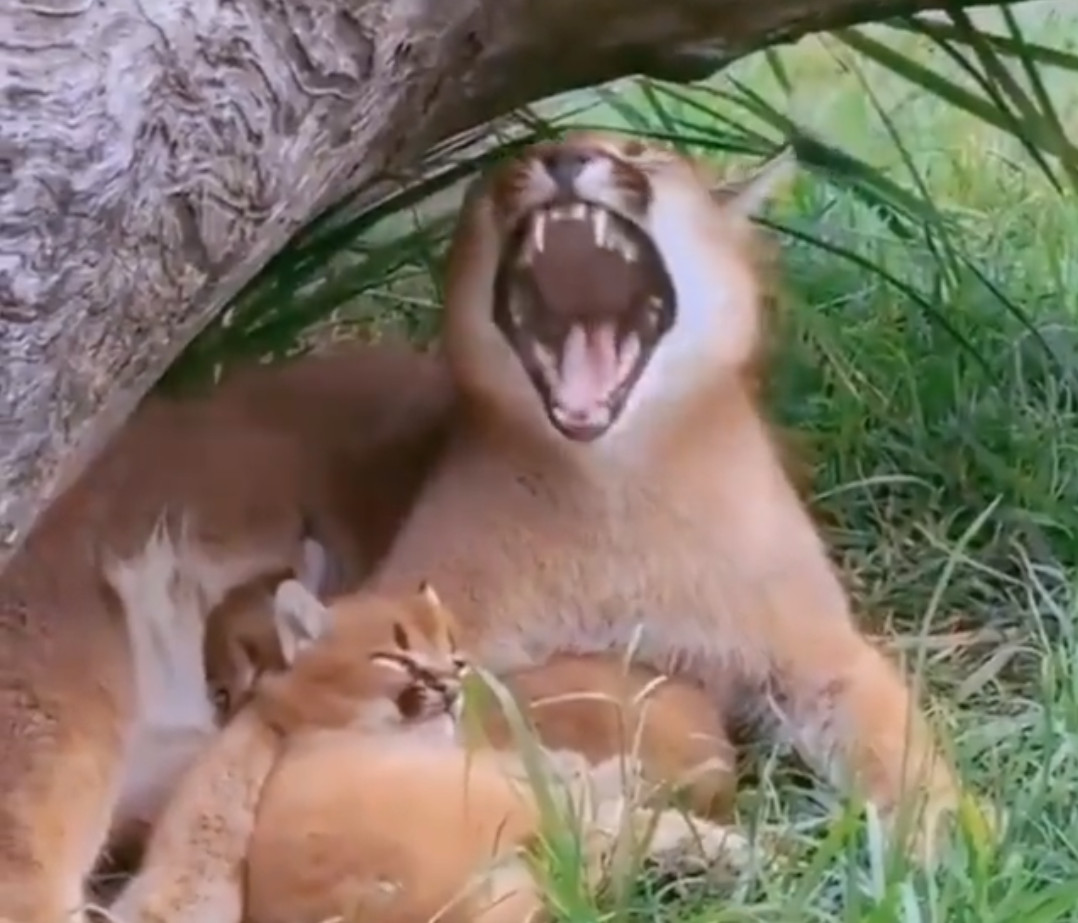 Ζώα: Μικρό αιλουροειδές χασμουριέται σαν τη μαμά του και γίνεται viral