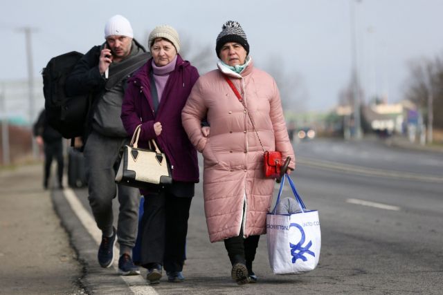 Ουκρανοί που εγκαταλείπουν τη χώρα τους για να γλιτώσουν από την εισβολή καταφεύγουν στην Πολωνία, με πολλούς να φτάνουν στο συνήθως ήσυχο πέρασμα στην πόλη Μέντικα σήμερα, κρατώντας βαλίτσες και συνοδευόμενοι από τα παιδιά τους.