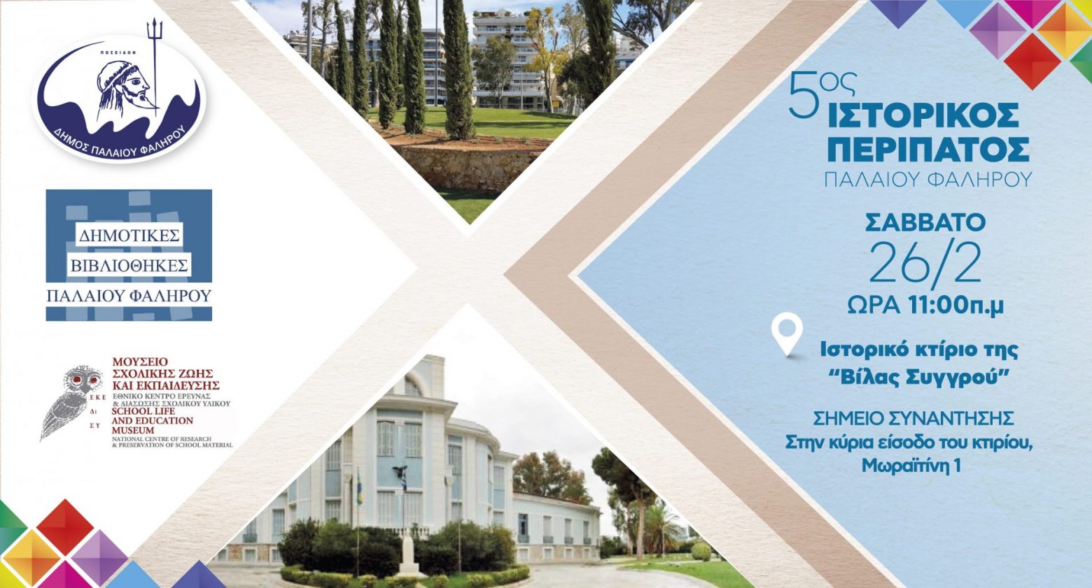 Ο Δήμαρχος Παλαιού Φαλήρου, Γιάννης Φωστηρόπουλος, προσκαλεί τους πολίτες στον Ιστορικό Περίπατο που θα διεξαχθεί το Σάββατο 26 Φεβρουαρίου, στις 11.00 το πρωί, με μια ξεχωριστή ξενάγηση, σε ένα σπουδαίο τοπόσημο της πόλης, το ιστορικό κτίριο της «Βίλας Συγγρού», όπου στεγάζεται η υπηρεσία της Πολεμικής Αεροπορίας ΓΕΑ/ Διεύθυνση Ιστορίας.