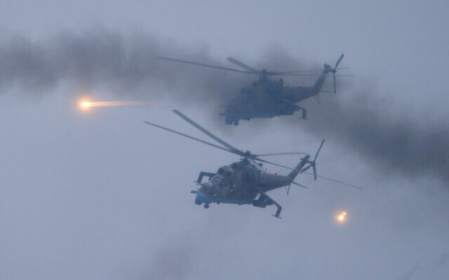 Η Ρωσία «εξάλειψε» την αεράμυνα της Ουκρανίας και προσπαθεί να συγκεντρώσει ισχυρές δυνάμεις γύρω από το Κίεβο, δήλωσε την Πέμπτη ανώτερο στέλεχος των δυτικών μυστικών υπηρεσιών (στη φωτογραφία αρχείου του AP, επάνω, βολές από επιθετικά ρωσικά ελικόπτερα).