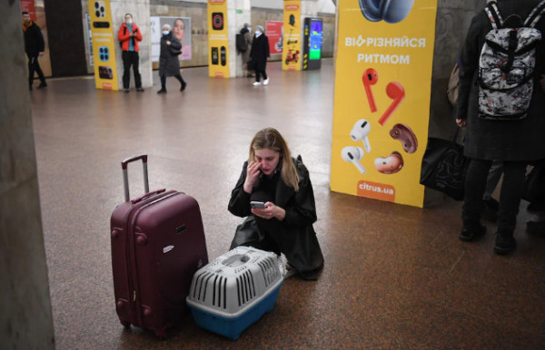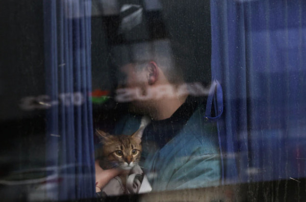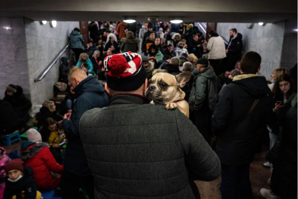Κάποιοι κρατούσαν τα παιδιά τους στην αγκαλιά τους, ενώ άλλοι κρατούσαν τα αγαπημένα τους κατοικίδια – τις γάτες και τα σκυλιά που δεν μπορούσαν να αφήσουν πίσω τους εν μέσω του μπαράζ επιθέσεων από τη Ρωσία.