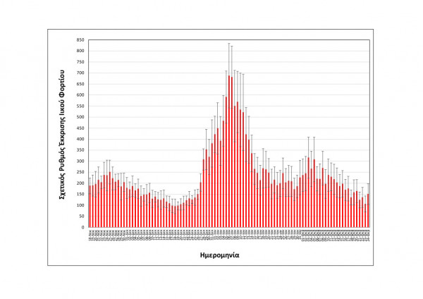Όπως φαίνεται στα διαγράμματα που παρουσιάζει το ΑΠΕ-ΜΠΕ (επισυνάπτονται) στις τελευταίες δύο μετρήσεις η μέση τιμή του ιικού φορτίου παρουσίασε έντονη ημερήσια διακύμανση, αλλά η μέση τιμή του διημέρου είναι σταθερή σε σχέση με τη μέση τιμή του προηγούμενου διημέρου.