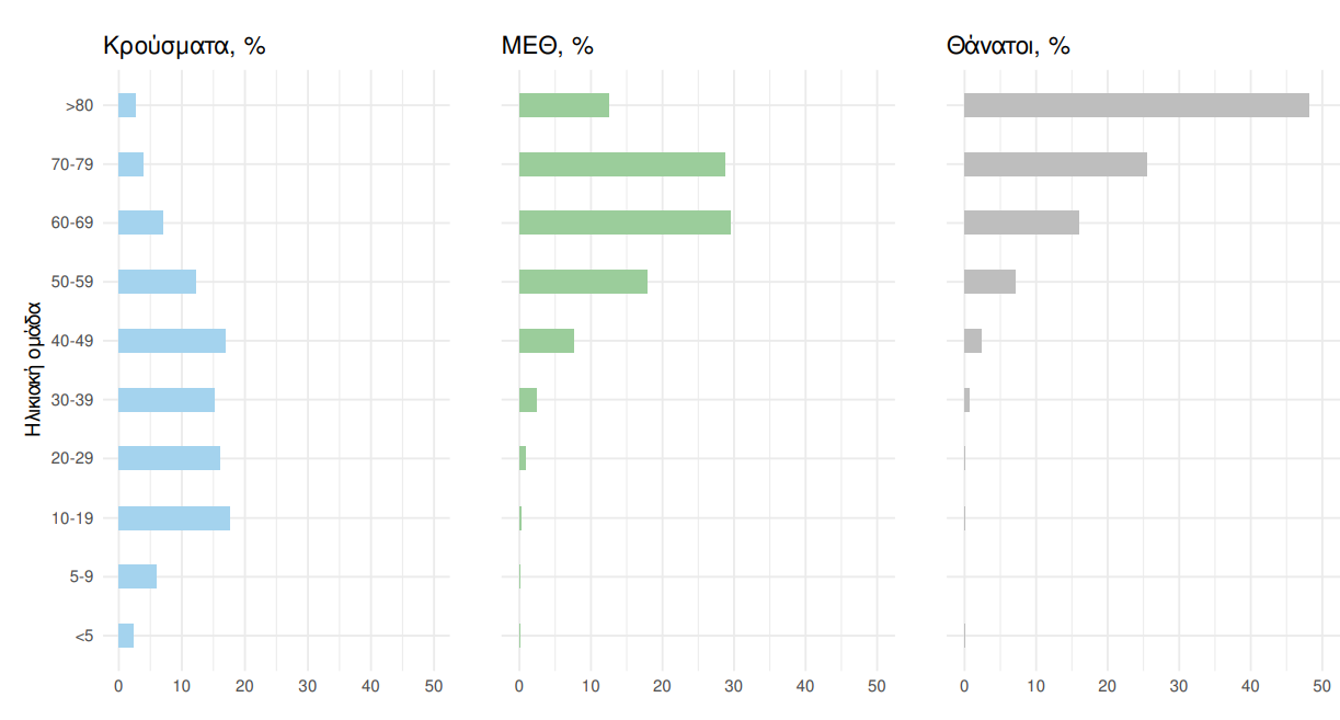 Η διάμεση ηλικία των κρουσμάτων είναι 35 έτη (εύρος 0.2 έως 106 έτη), ενώ η διάμεση ηλικία των θανόντων είναι 79 έτη (εύρος 0.2 έως 106 έτη).