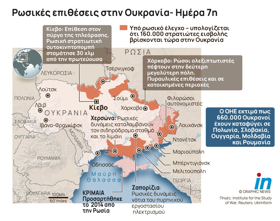Παρακολουθήστε live τις εξελίξεις την έβδομη ημέρα του πολέμου στην Ουκρανία.