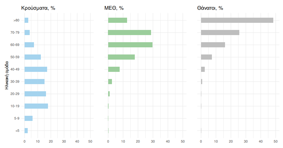 Η διάμεση ηλικία των κρουσμάτων είναι 35 έτη (εύρος 0.2 έως 106 έτη), ενώ η διάμεση ηλικία των θανόντων είναι 79 έτη (εύρος 0.2 έως 106 έτη).