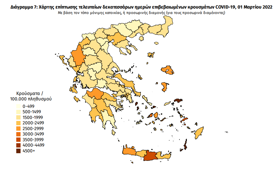 Ο χάρτης αποτυπώνει τη γεωγραφική κατανομή των συνολικών κρουσμάτων COVID-19 (από την αρχή της επιδημίας) ανά Περιφερειακή Ενότητα της χώρας, με βάση την δηλωθείσα διεύθυνση μόνιμης κατοικίας του ασθενούς, ή τη διεύθυνση προσωρινής διαμονής για τους τουρίστες και άλλους προσωρινά διαμένοντες στην Ελλάδα. Συμπεριλαμβάνονται τόσο κρούσματα με ιστορικό ταξιδίου (“εισαγόμενα”) όσο και κρούσματα με πιθανή εγχώρια μετάδοση.