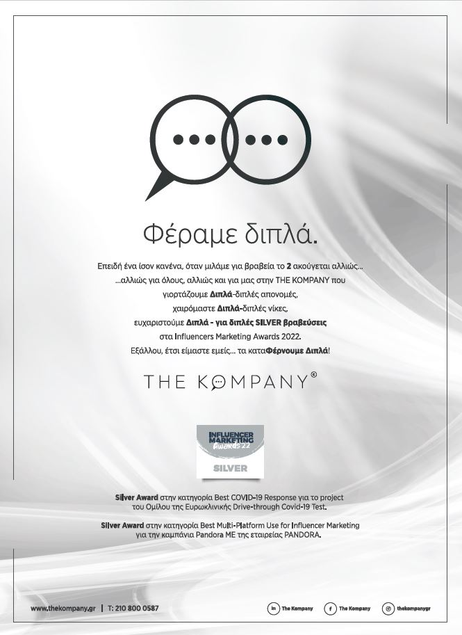 Η The Kompany απέσπασε 2 SILVER βραβεία στα Influencers Marketing Awards 2022 που πραγματοποιήθηκαν για 3η χρονιά, με μεγάλο αριθμό συμμετοχών.