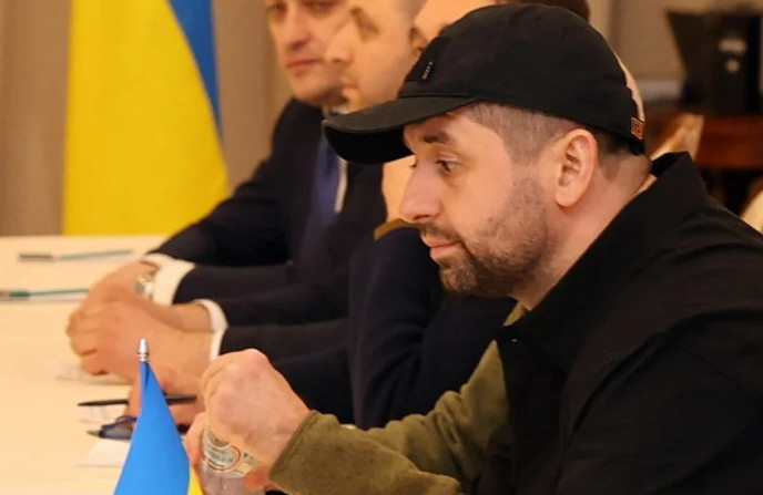 Τα μάτια όλων μόλις οι αντιπροσωπίες Ρώσων και Ουκρανών, κάθισαν στο μακρύ τραπέζι των διαπραγματεύσεων, έπεσαν στον άνδρα με το μαύρο κοντομάνικο και το μαύρο καπέλο που καθόταν με την Ουκρανική αντιπροσωπεία.