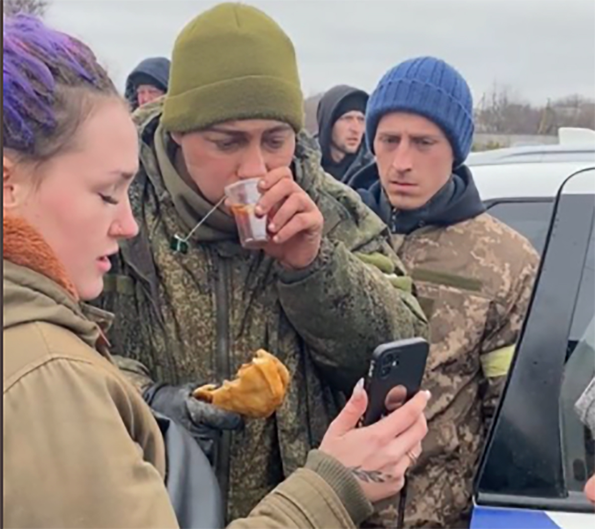 Τον αφόπλισαν, του έδωσαν να πιεί τσάι και να φάει ενώ τον άφησαν να μιλήσει με τη μητέρα του μέσω βιντεοκλήσης. Η Αναστασία Λαπατίνα που είναι Ουκρανή δημοσιογράφος και ήταν παρούσα ανέβασε στο twitter το σχόλιο: «Θέλω να κλάψω για την πατρίδα μου».