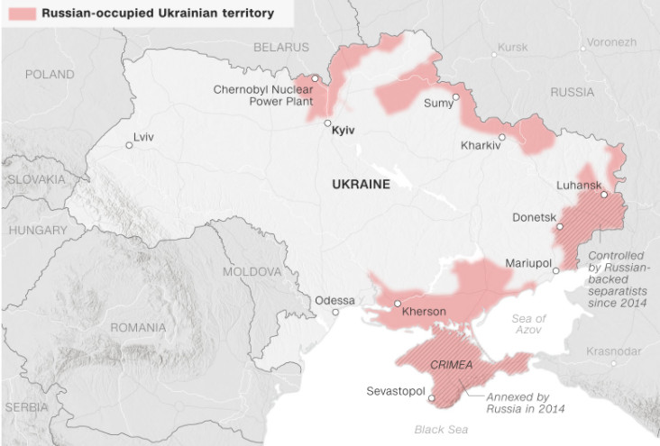 Στο μεταξύ, χάρτη με τις ουκρανικές περιοχές που φέρονται να έχουν καταλάβει οι ρωσικές δυνάμεις στην Ουκρανία, δημοσίευσε το CNN.