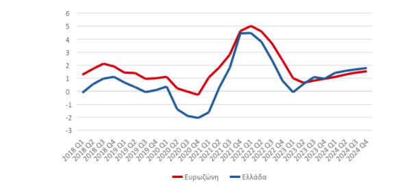Διάγραμμα 2. Πληθωρισμός (ετήσια ποσοστιαία μεταβολή των τιμών, %)