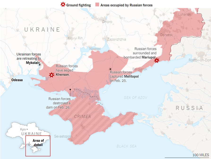 Μετά την κατάληψη της Χερσώνας οι ρωσικές δυνάμεις κινούνται βορειοδυτικά όπου βρίσκονται τα σημαντικά λιμάνια του Νικολάγιεφ και της Οδησσού