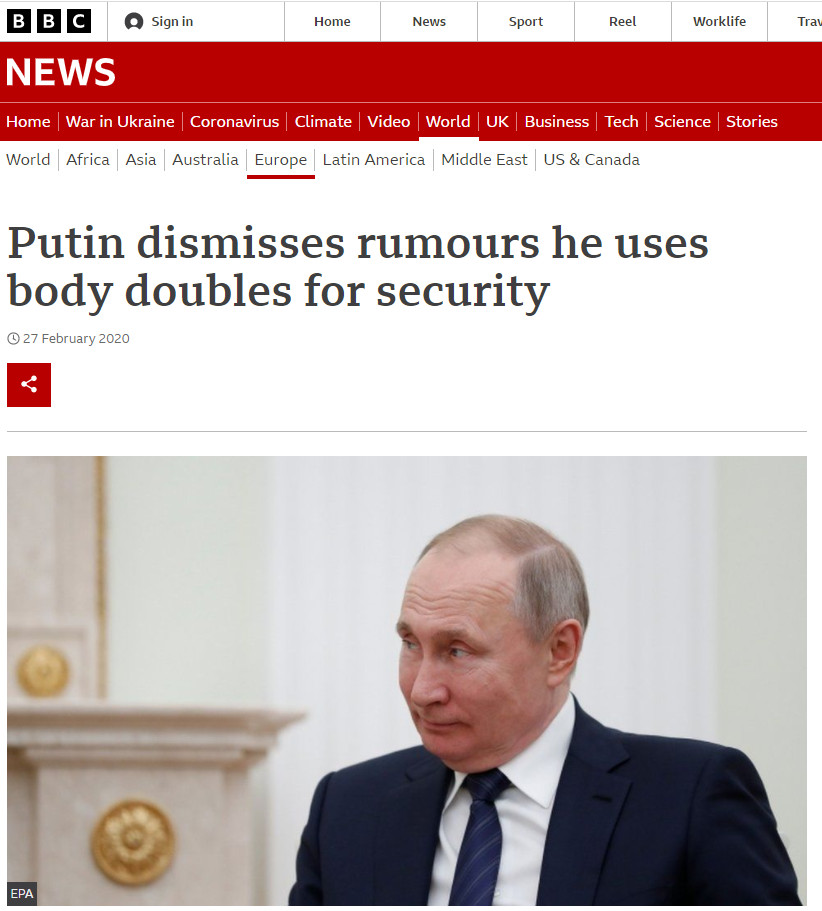 Το ερώτημα αν ο ρώσος πρόεδρος, Βλαντίμιρ Πούτιν, έχει σωσία θεωρείται μια από τις πλέον δημοφιλείς απορίες που διατυπώνονται στο διαδίκτυο. Πολύ περισσότερο, δε, από τη στιγμή που η Ρωσία εισέβαλε στην Ουκρανία την περασμένη Πέμπτη.