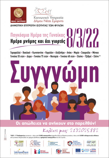 Με αφορμή την παγκόσμια ημέρα της γυναίκας ο Δήμος της Νέας Σμύρνης σύσσωμος στέλνει το δικό του μήνυμα συμπαράστασης αλλά και αποδοχής της ευθύνης.