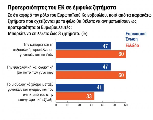 Το 74% θεωρεί ότι η πανδημία της covid-19 έχει οδηγήσει σε αύξηση της σωματικής και συναισθηματικής βίας κατά των γυναικών, ενώ το trafficking και η βία αναφέρονται ως ζητήματα βασικής προτεραιότητας από τις γυναίκες, για τα οποία ζητούν δράσεις από το Ευρωπαϊκό Κοινοβούλιο.