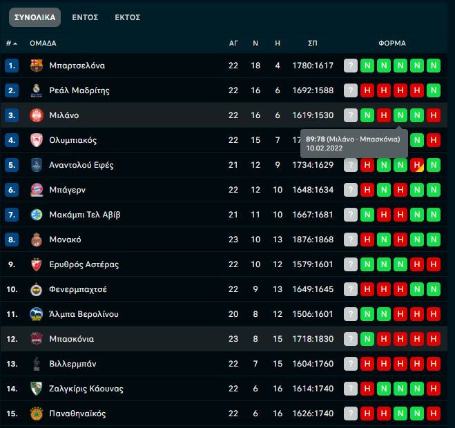 Μετά τη Ρεάλ Μαδρίτης που ηττήθηκε από τον Ερυθρό Αστέρα, και το δεύτερο παιχνίδι της βραδιάς έκατσε βολικά για τον Ολυμπιακό! Η Μπασκόνια πραγματοποίησε εξαιρετική εμφάνιση και επικράτησε με 87-74 της Εφές, διατηρώντας την ομάδα του Γιώργου Μπαρτζώκα στο +3 από τους Τούρκους, στην προσπάθεια που κάνει για κάτι περισσότερο από την τέταρτη θέση ενόψει των πλέι οφ.