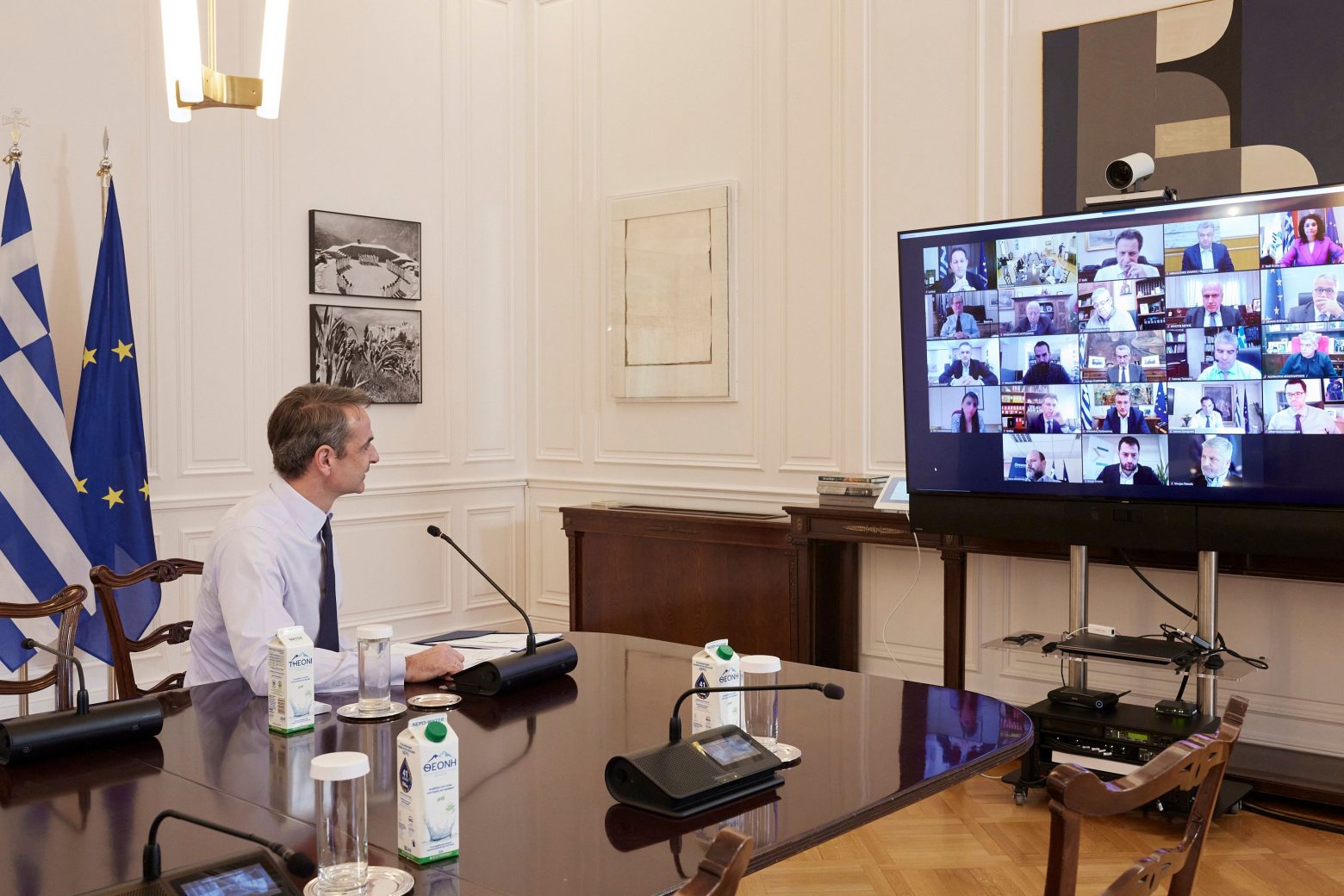 Στην τηλεδιάσκεψη μετείχαν από την πλευρά της κυβέρνησης ο Υπουργός Ανάπτυξης Άδωνις Γεωργιάδης, ο Υπουργός Εσωτερικών Μάκης Βορίδης, ο Υπουργός Επικρατείας Άκης Σκέρτσος, ο Αναπληρωτής Υπουργός Οικονομικών Θεόδωρος Σκυλακάκης, ο Αναπληρωτής Υπουργός Εσωτερικών Στέλιος Πέτσας, ο Υφυπουργός Ανάπτυξης Γιάννης Τσακίρης, ο Γενικός Γραμματέας Δημοσίων Επενδύσεων & ΕΣΠΑ Δημήτρης Σκάλκος, η Γενική Γραμματέας Ανθρώπινου Δυναμικού Βιβή Χαραλαμπογιάννη, ο Γενικός Γραμματέας Συντονισμού Θανάσης Κοντογεώργης και ο Διοικητής της Ειδικής Υπηρεσίας Συντονισμού του Ταμείου Ανάκαμψης του Υπουργείου Οικονομικών Νίκος Μαντζούφας.