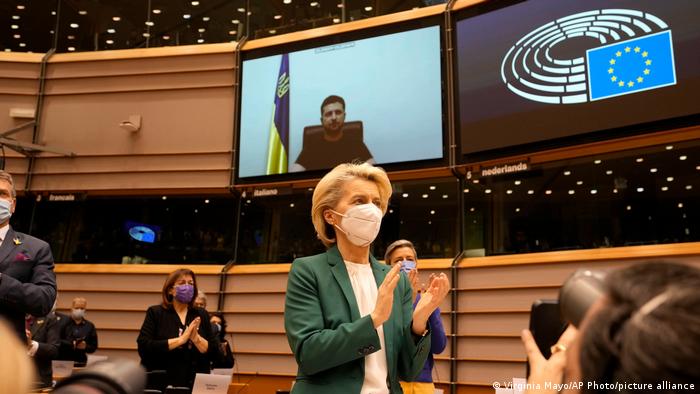 Η πολύπλοκη διαδικασία ένταξης μιας χώρας στην ΕΕ διαρκεί υπό κανονικές συνθήκες χρόνια, ακόμα και δεκαετίες. Για την Ουκρανία, τη Γεωργία και τη Μολδαβία δεν αποκλείεται να επιταχυνθεί η όλη διαδικασία, τουλάχιστον στα πρώτα της βήματα (στη φωτογραφία, επάνω, χειροκρότημα της φον ντερ Λάιεν για το διάγγελμα Ζελένσκι στο ευρωκοινοβούλιο).