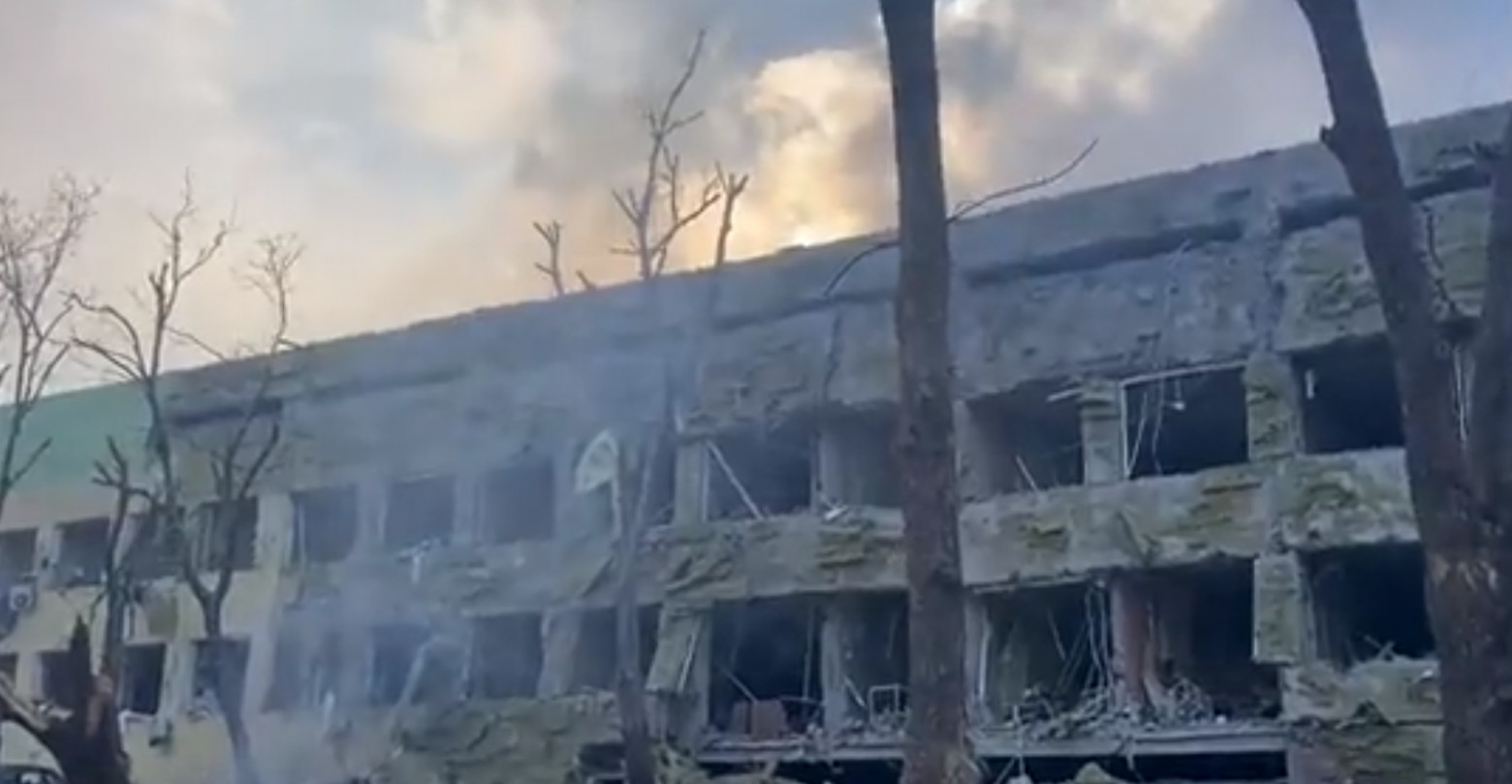 VIDEO: Large crater left following Russian strike that hit a hospital in Mariupol. pic.twitter.com/MUcguXDuec